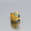 Della is shaped from the metal of a 1975 Ford Gran Torino and a 1975 Dodge forest service truck, showing off a mellow mix of mustard yellow and light green turquoise. The worn, time-softened colors give this ring a relaxed retro vibe that feels fun, unique, and full of character. Every surface mark tells part of the story, turning recycled vintage car parts into art jewelry. Hand formed for comfort, Della is a sustainable statement piece with true Joyride soul.