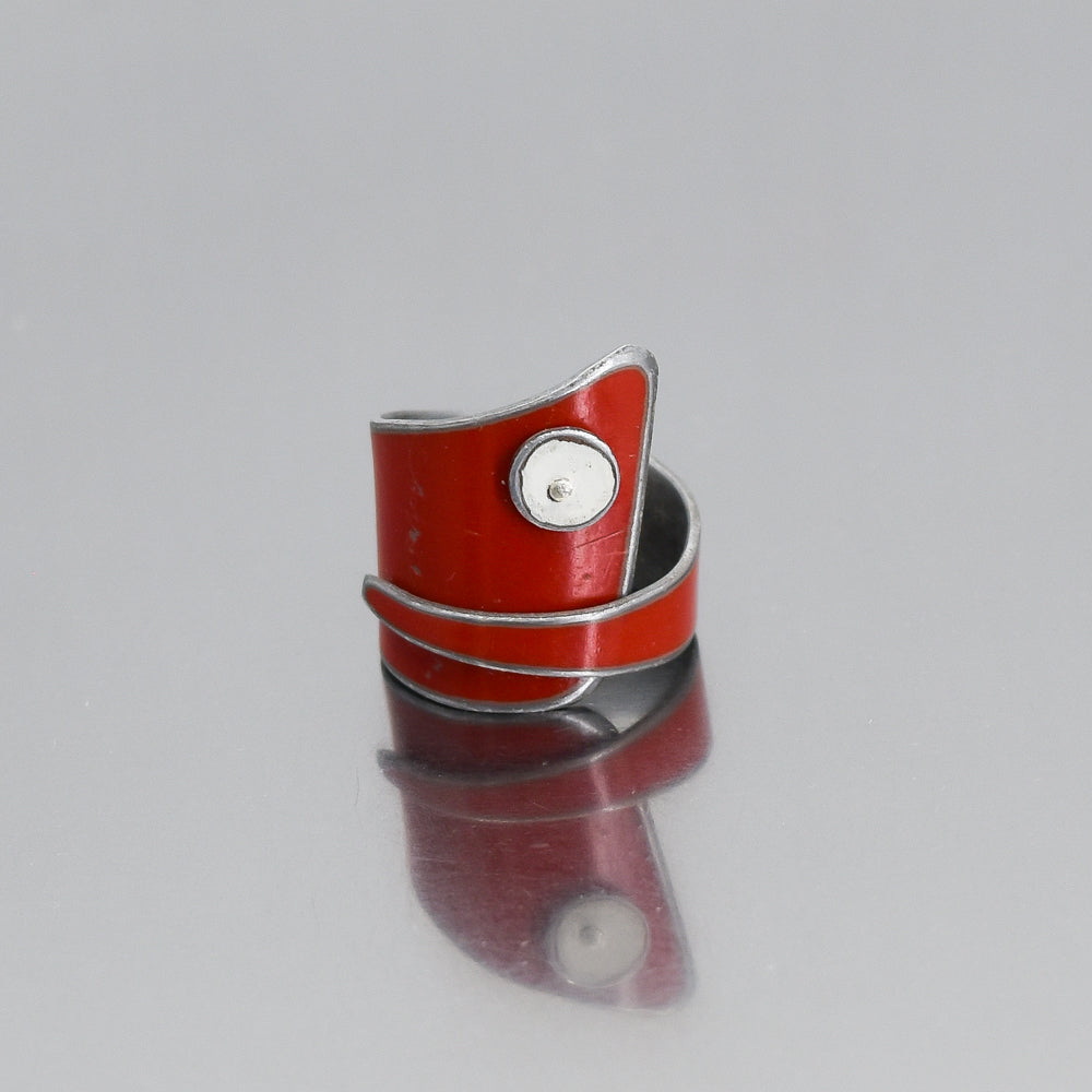 Della is shaped from the metal of two classic vehicles, rich red from a 1969 Mercury Monterey and white from a 1964 Ford Fairlane, each retaining its original car paint with all its depth and character. The contrast of color gives the ring a bold retro feel, while the hand formed shape adds a modern style. Made from recycled vintage car parts, Della is a striking piece of art jewelry with authentic Joyride soul for anyone who loves design with true history behind it.