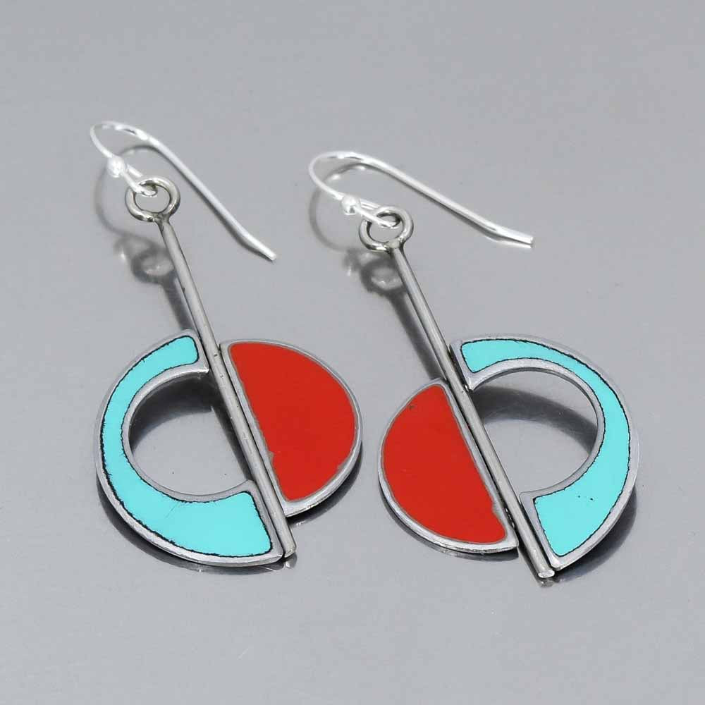 Ginger is made from the metal of a 1958 Dodge D100 in turquoise and a 1962 Ford Falcon in bold red, each keeping its original car paint intact. The vibrant, classic color pairing gives these earrings strong visual contrast and lively movement. Long and balanced in form, Ginger carries a striking presence while still feeling light and wearable. Hand shaped from recycled vintage car metal, these earrings blend modern lines with a retro spirit and the unmistakable character of Joyride.